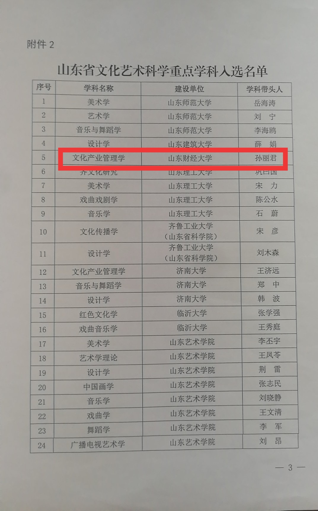 省级以上重点学科-山东省文化厅文化艺术科学重点学科