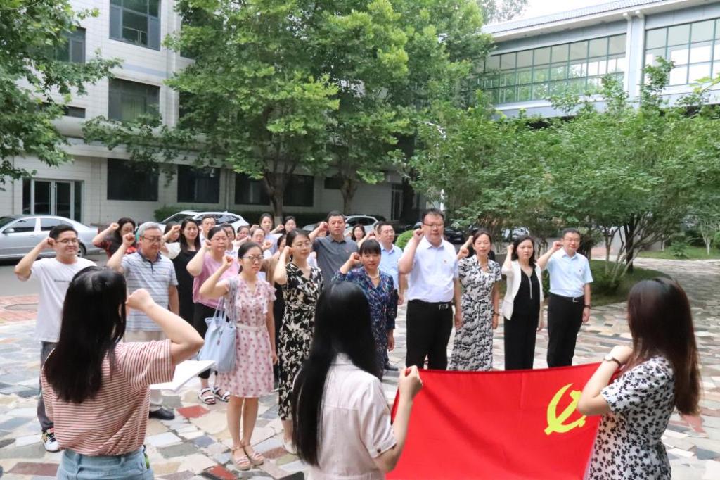 座谈会结束后,双方在济南一中邓恩铭广场聆听了济南一中杰出校友、革命烈士邓恩铭的光辉事迹。期间,全体党员重温入党誓词,回顾了入党宣誓时的庄严承诺和坚定决心,深刻体会邓恩铭同志献身革命的崇高精神。