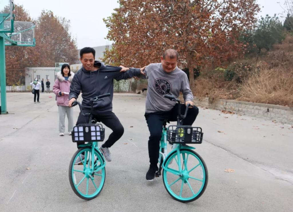 其中,自行车慢骑与足球射门是场上的热门项目。比赛过程中,老师们踊跃参与,为了获得更好成绩,老师们各显神通,赛场上洋溢着欢乐的气氛。