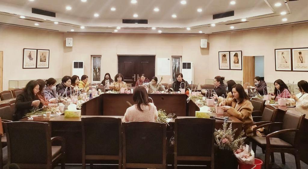 接着,众人在诗学讲堂一齐参加了插花活动。在花艺师的指导下,老师们认真学习了选花、剪花和造型等花艺技巧,用慧思巧手制作出独具魅力的插花作品,为自己送上了一份特别的节日礼物。