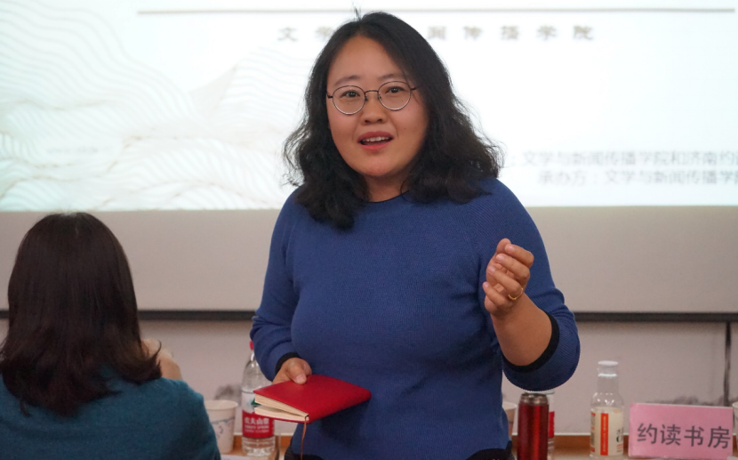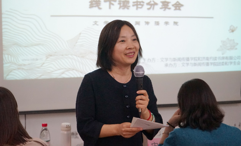 而后,约读书房的高晓娜老师上台发言。她对文院学子的活动表现表达了赞许,并针对演讲环节提出了一些建议。