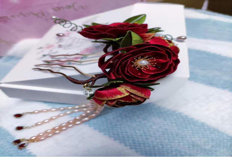 其中司文婷设计的两心同英山缠花作品,是选用缠花的表现形式,继承传统手工艺,赋予其新的形式,希望缠花能再次簪在发间。