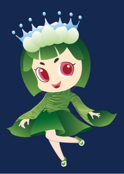 杨梓以神话传说中的头带茶花、身着绿衣的“茶仙子”为原型,并进行卡通化处理而创造的北茶仙子的IP造型,美丽可爱、灵动秀气,传递着日照绿茶的蓬勃发展。