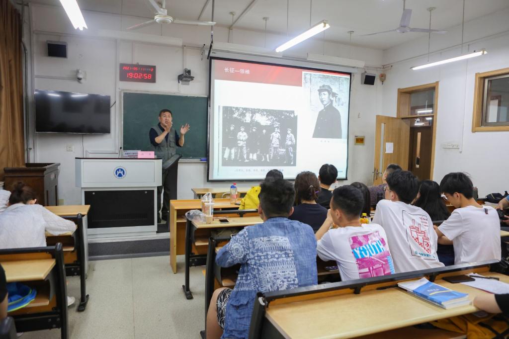 讲解过程中,韩军通过提问等形式,增强讲堂的互动感和参与感。整场会议氛围融洽,同学们积极回答,热情提问,韩军认真讲解,详细作答,在互动与交流中加深了同学们对党史的认知。