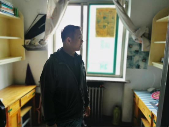 辅导员正在进行消防安全排查