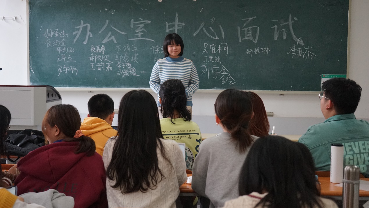 2021年10月28日下午13:30,文学与新闻传播院学生会如期举行纳新活动的第二轮面试,学生会四大中心各设面试教室,并设专人在候场室及时安排次序,整场面试在有条不紊中进行。