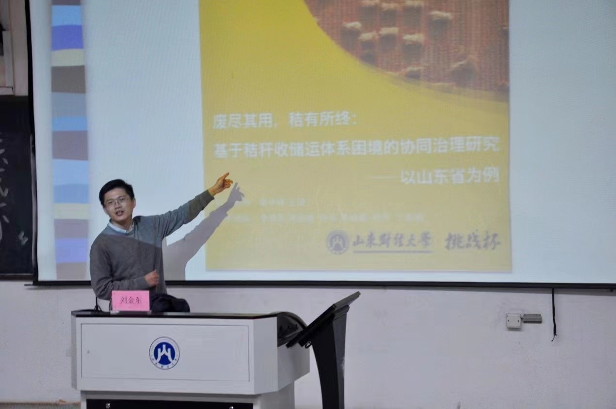 10月27日下午,我院在舜耕校区第二阶梯教室举行“挑战杯”竞赛系列培训讲座第一期,太阳成城集团经济研究中心副主任、财政税务学院副教授、山东省大学生创新创业训练计划项目评审专家刘金东担任主讲人,我院党委副书记王恩娟主持讲座,团委书记杜淑艳、2020级辅导员边慧以及我院部分学生聆听学习。