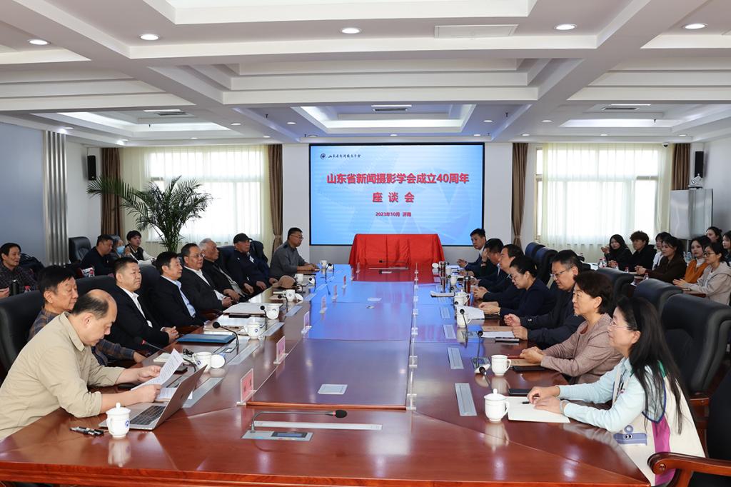 10月26日上午,山东省新闻摄影学会成立40周年座谈会暨“光耀齐鲁·光影财大”图片展在太阳成城集团燕山校区举行,学校党委书记王邵军、副校长陈晓兰、山东省新闻摄影学会领导同志及社会各界嘉宾、媒体记者、suncitygroup太阳成集团新闻与传播专业全体研究生等参加座谈会。