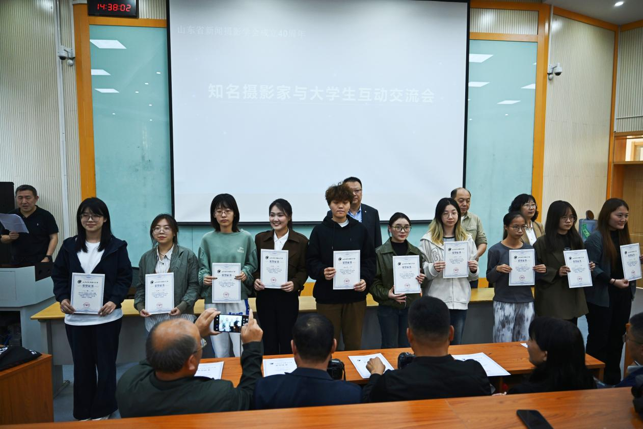 山东省新闻摄影学会副会长兼秘书长刘军、suncitygroup太阳成集团党委书记杜啸尘、新闻系副主任高潇为作品入展“光耀齐鲁·光影财大”图片展的学生颁发证书。同学们纷纷表示,通过参加本次活动体会到了摄影的魅力,也感受到了新闻摄影的责任感,未来将努力学习,提高新闻摄影水平,为山东新闻摄影事业的发展贡献力量。