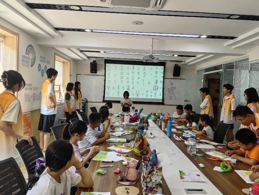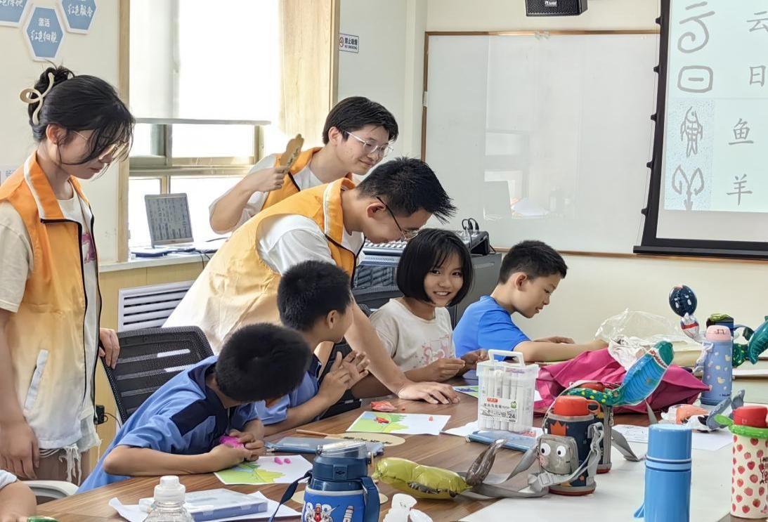活动期间,同学们向小学生们讲述了象形文字的起源与其对于汉字文化传承发展的重要意义。九名志愿者给小学生们讲解完甲骨文的基本知识并带领他们学习了几组简单的甲骨文文字后,细心指导小学生们用太空泥捏出一个个别致的甲骨文字,并用它们构成一幅甲骨文图画,用这些甲骨文给大家讲述属于自己的故事。通过此次活动,我院学子将优秀传统文化知识融入到课堂与生活实践中,与孩子们共同体会过去与现在的紧密联结,使他们了解到博大精深、源远流长的汉字文化,用实际行动做到说好中国话,写好中国字。