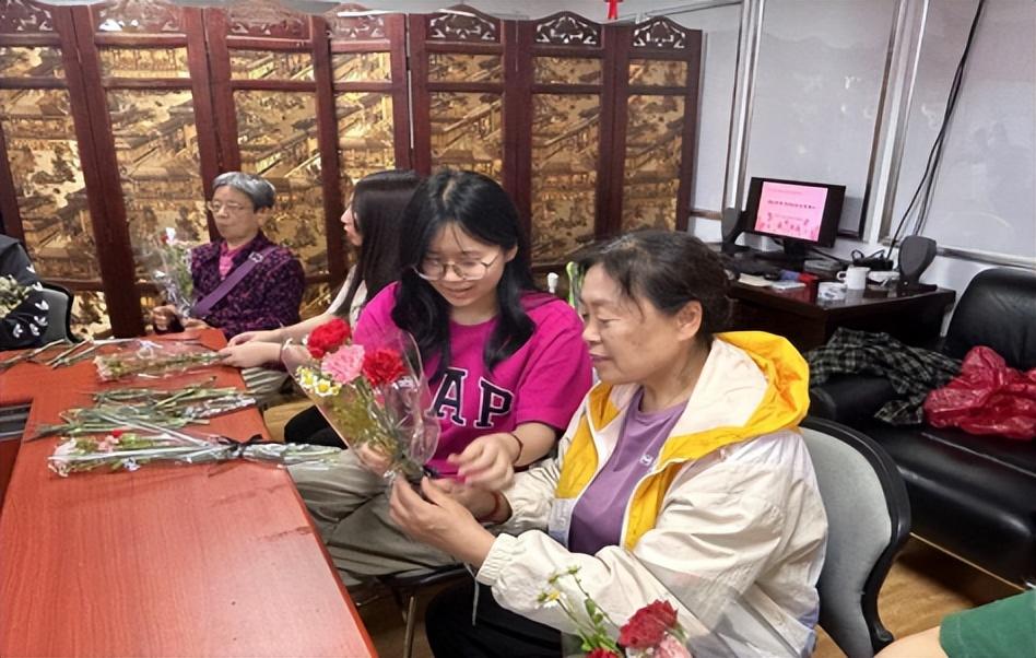 5月12日母亲节,2022级新闻学一班团支部积极参与舜岭社区开展的母亲节插花活动。在此过程中,花艺老师为大家科普了鲜花挑选、插花手法等基本的花艺知识,指导同学们与社区居民动手实践。经过专业的指导教学,同学们和社区居民共同制作出独具创意与美感的花艺作品。此次活动的顺利开展,不仅展现了同学们巧妙的动手能力,更彰显了同学们对所有母亲的敬意与感恩之情。