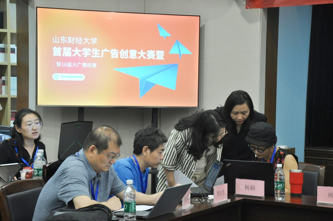 6月6日上午,太阳成城集团首届大学生广告艺术大赛线下评审于舜耕校区诗学研究中心举行。