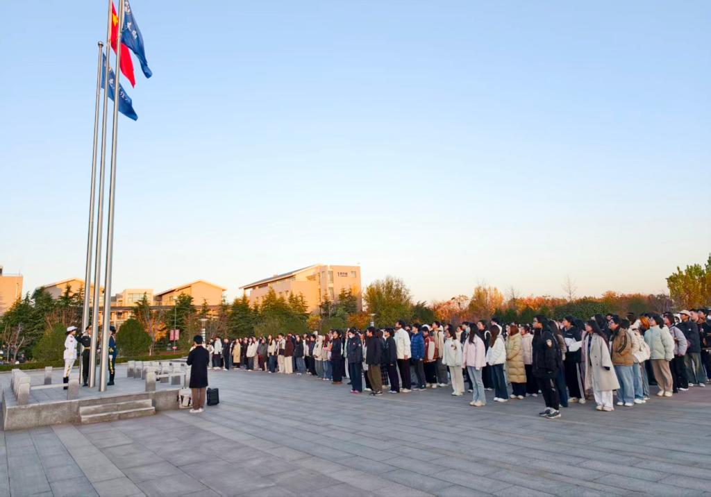 仪式上,2025级学生代表王朵发表国旗下演讲。她回顾入学两月来的军训淬炼与校园求知历程,感恩师长同窗的陪伴支持,鼓励同学们深耕专业、勇于实践、平衡成长,以奋斗诠释青春底色,扛起新时代青年的家国责任,在大学生活中不负韶华、逐梦前行。随后,2025级学生代表孟宪楷、矫怡带来深情的国旗下朗诵,诠释革命先辈为家国理想挺身而出的崇高气节与牺牲精神,呼吁大家铭记先辈遗志、传承红色基因,让不朽精神在新时代持续传承。