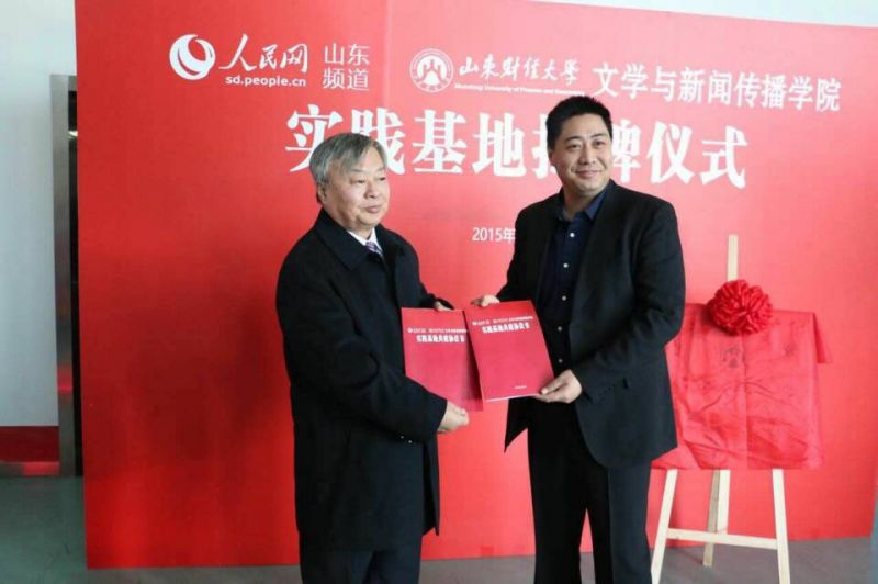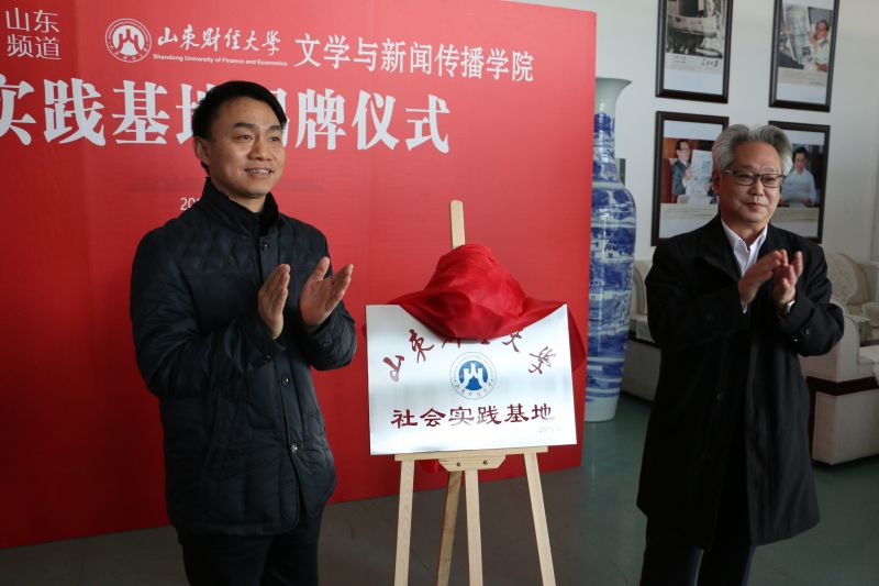 在热烈的鼓掌声中,太阳成城集团副校长胡文波与人民日报社山东分社采编中心主任刘成友共同为实践基地揭牌。
