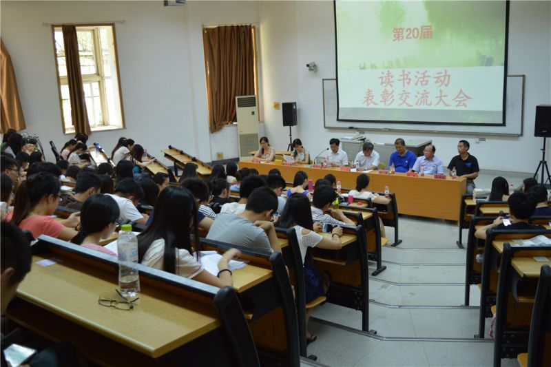 表彰大会开始时,赖昭瑞宣读了此次读书活动获奖名单,本次读书活动受表彰的学生共53人,其中,一等奖6人,二等奖12人,三等奖17人,优秀奖18人。出席会议的各位领导和老师为获奖同学颁发了奖状和奖品。随后,来自2012级新闻二班殷利、2013级新闻一班高歌、2014级新闻一班徐明月获奖学生代表进行了发言,分别分享了各自读书的经历与经验,从学生角度出发,给同学们讲述了读书的重要性与魅力,并鼓励同学们要读书,多读书。