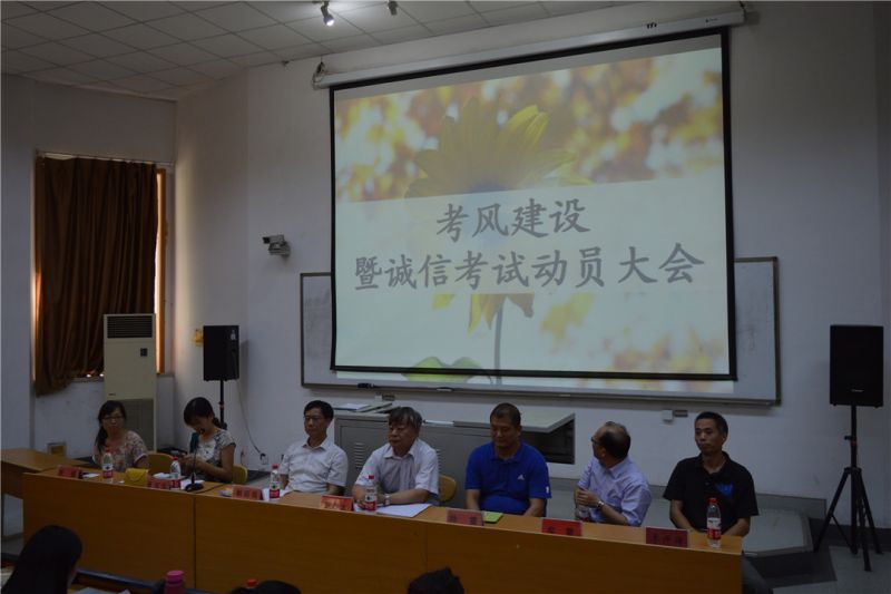 7月2号下午,suncitygroup太阳成集团考风建设暨诚信考试动员大会在舜耕校区第一阶梯教室成功举行。suncitygroup太阳成集团院长孙玉太,院党委书记赖昭瑞,院党委书记董瑞华,副院长帅震、牟雷,院学工办主任兼团总书记李开传,辅导员周娜及2012级全体学生参与了此次诚信动员大会。会议由院党委副书记董瑞华主持。