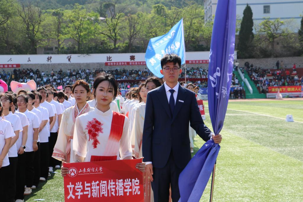 “青春敢当,赛扬风采;文化启航,共铸辉煌。”在激昂的呐喊声中,我院方阵身着典雅马面裙与华美汉服,步履端庄地迈入会场,衣袂翻飞间尽显中华传统文化的独特魅力与深厚底蕴。矫健的身姿与抖擞的精神交相辉映,蓬勃的朝气和无畏的豪情尽显我院学子勇往直前、追求卓越的昂扬斗志,成为开幕式上一道亮丽的风景线。