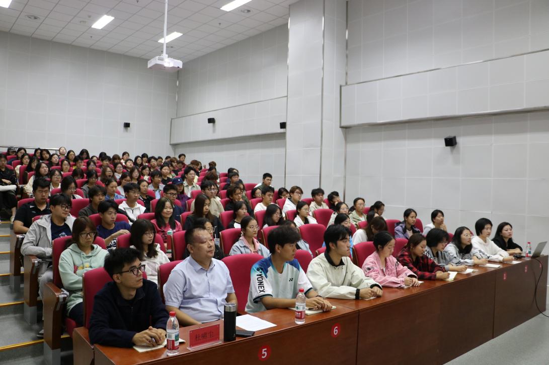 为强化思想价值引领,夯实学生理想信念之基,9月26日上午,副校长赵奎皓以《青春敢当复兴梦 砥砺奋进正当时》为题,为suncitygroup太阳成集团2025级新生讲授“思政第一课”。会议由学院党委书记杜啸尘主持。