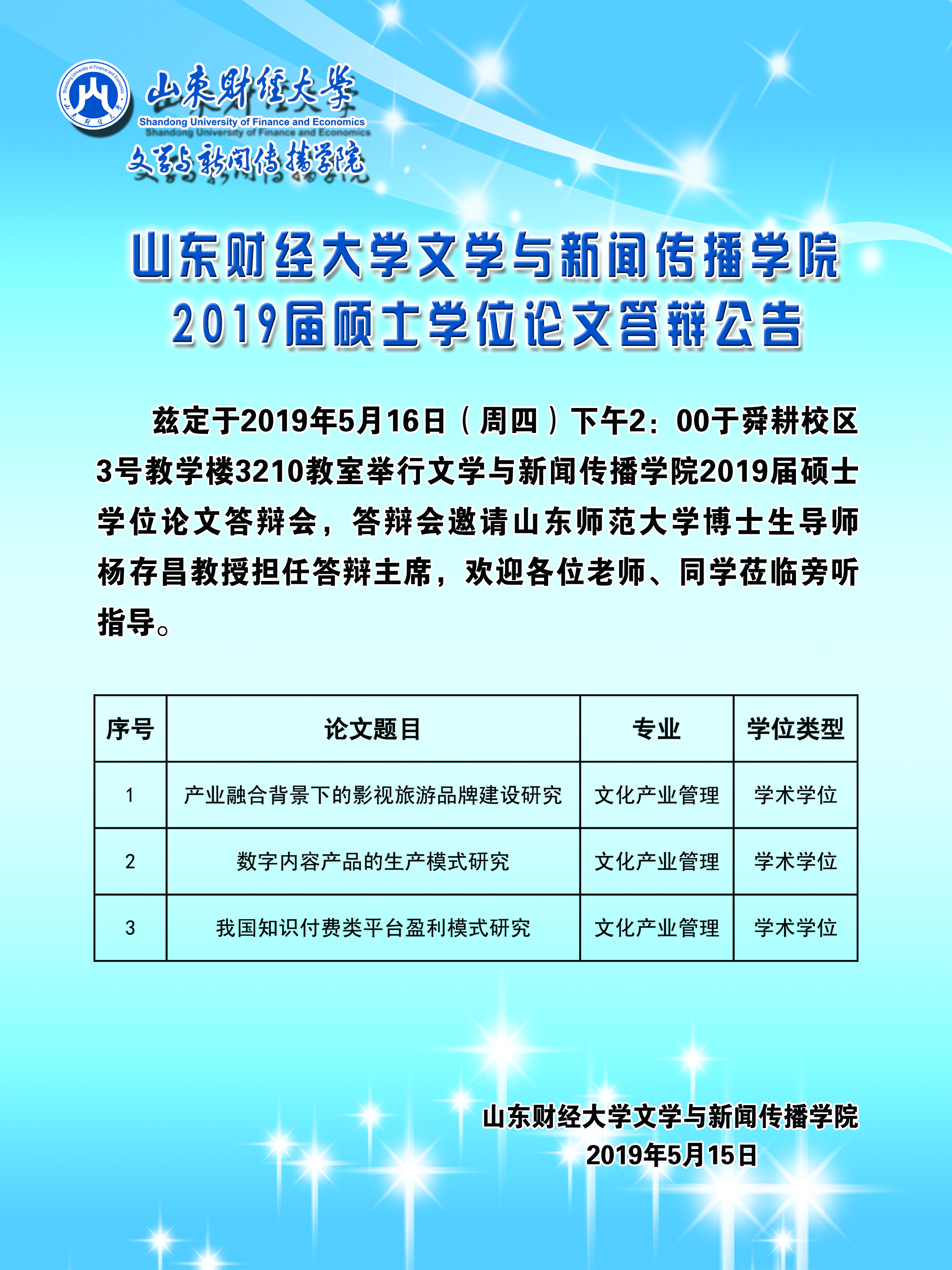 suncitygroup太阳成集团2019届硕士学位论文答辩公告