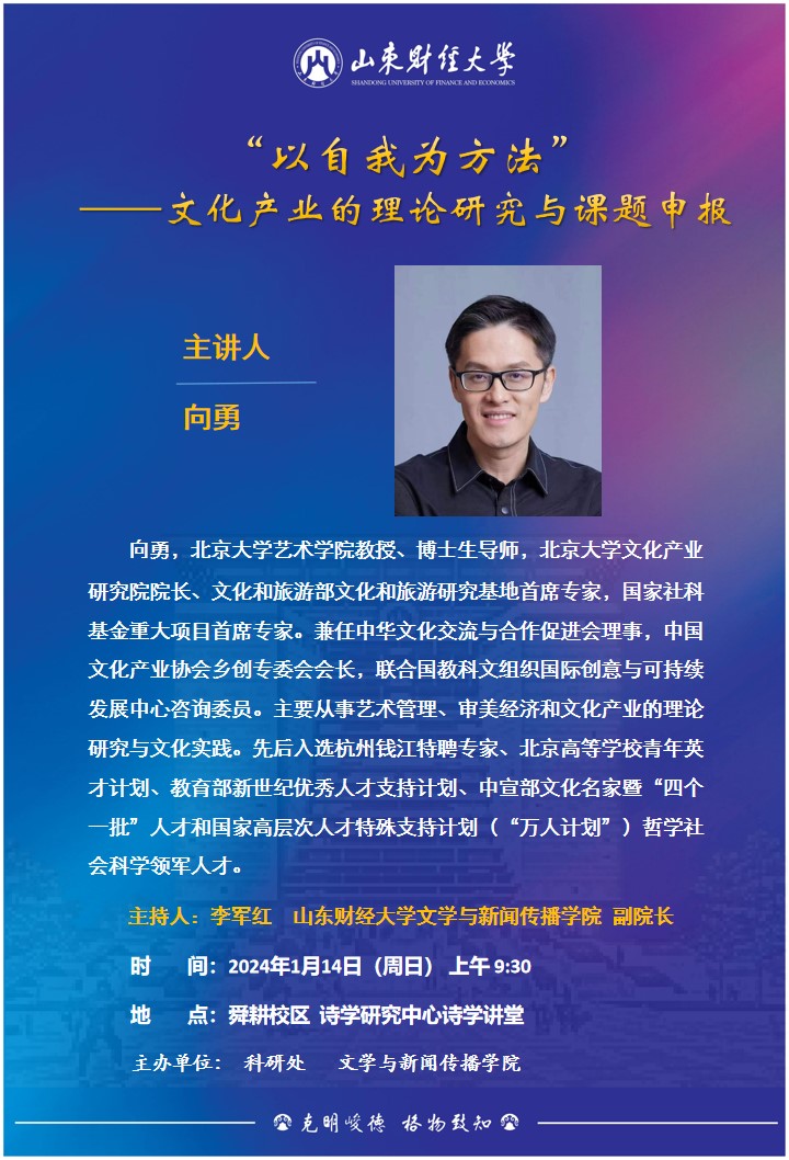 讲座预告:“以自我为方法” ——文化产业的理论研究与课题申报