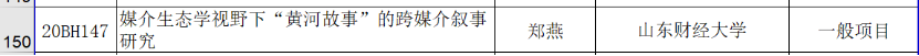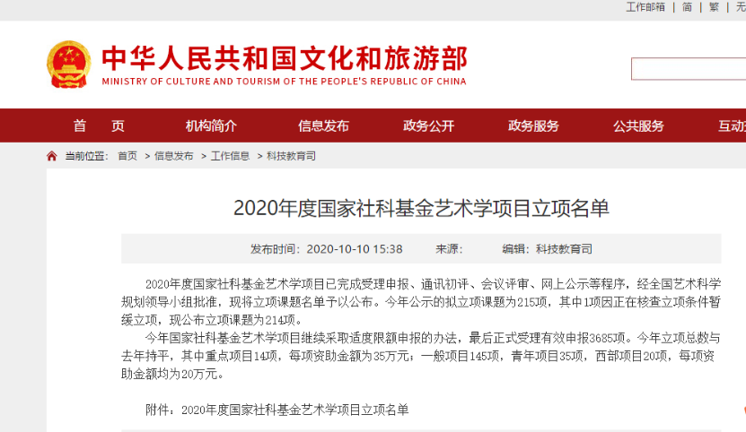 2020年10月10日中华人民共和国文化和旅游部官网发布了《2020年度国家社科基金艺术学项目立项名单》,我院郑燕老师的项目《媒介生态学视野下“黄河故事”的跨媒介叙事研究》在2020年度国家社科基金艺术学项目评审中获得立项资助。