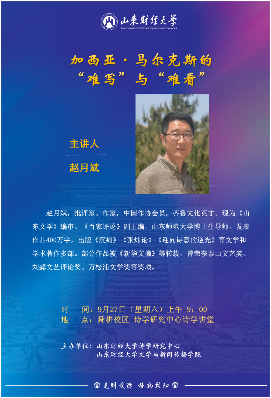 上一条:诗学大讲堂: 加西亚·马尔克斯的“难写”与“难看”——赵月斌谈《族长的秋天》 下一条:诗学研究中心赴烟台参观学习