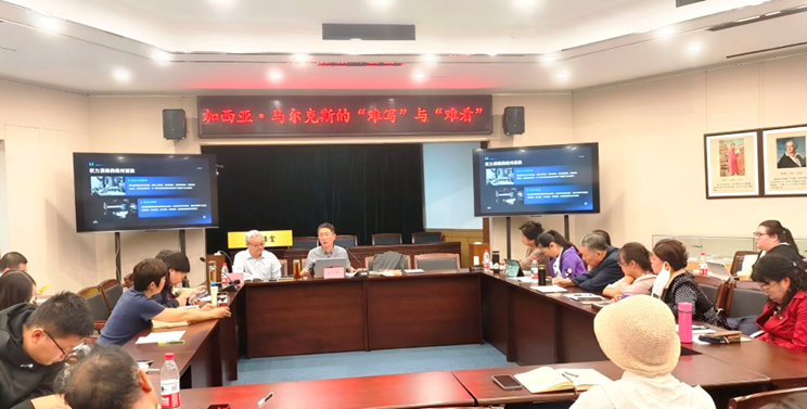 赵月斌教授首先聚焦《族长的秋天》长期“被冷落”的核心问题,从文本形式阅读困难、作品体裁定位模糊以及其他经典作品的遮蔽效应三个方面进行了深入阐释。其次,在文章形式上,对《族长的秋天》的六段式螺旋结构进行了深入分析,通过层层解构权力幻觉形成“螺旋式下降”的叙事脉络,为文本提供了广阔的解读空间。再者,在人物形象与主题上,从“拉美独裁者谱系”切入,重点剖析了“独裁者的孤独诗学”。还指出:“番石榴气味”是解读作品的重要切入角度,书中反复出现的三种感官意象,共同构成了“权力幻觉的嗅觉背景”。最后,提出《族长的秋天》是一部“可以无穷无尽读下去的书”,其对权力、孤独与文化的深刻洞察,值得反复阅读。赵教授以其风趣的互动式讲解风格与严谨的学术态度赢得了参会师生的阵阵掌声。